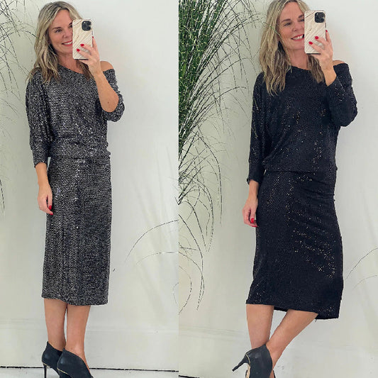 Women's Sequin Nightclub Evening Dress with Sleeves