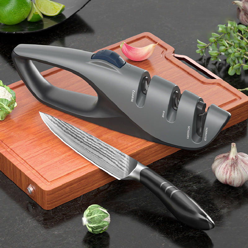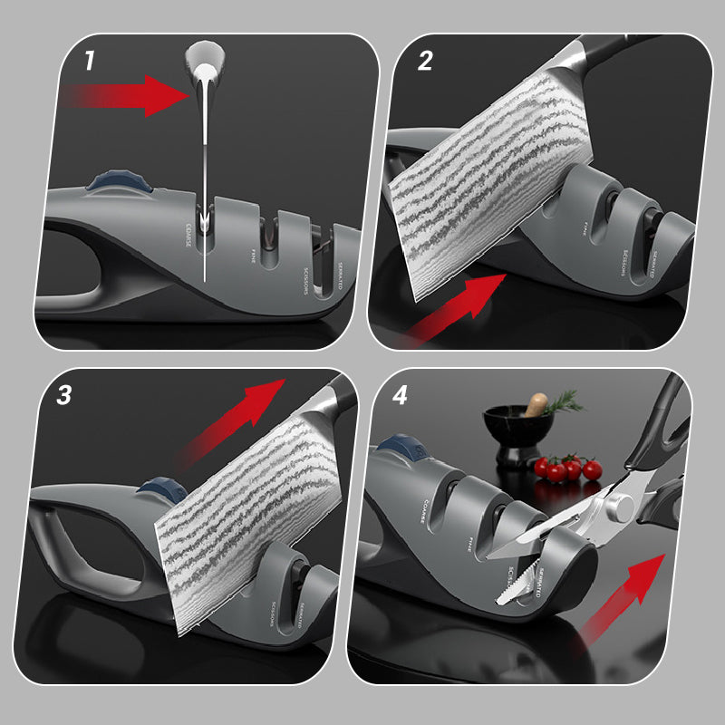 ADJUSTABLE ANGLE SETTINGS – Allows you to adjust the sharpening angle, ensuring optimal sharpening precision for different blade types, whether you're working with a chef’s knife or scissors.