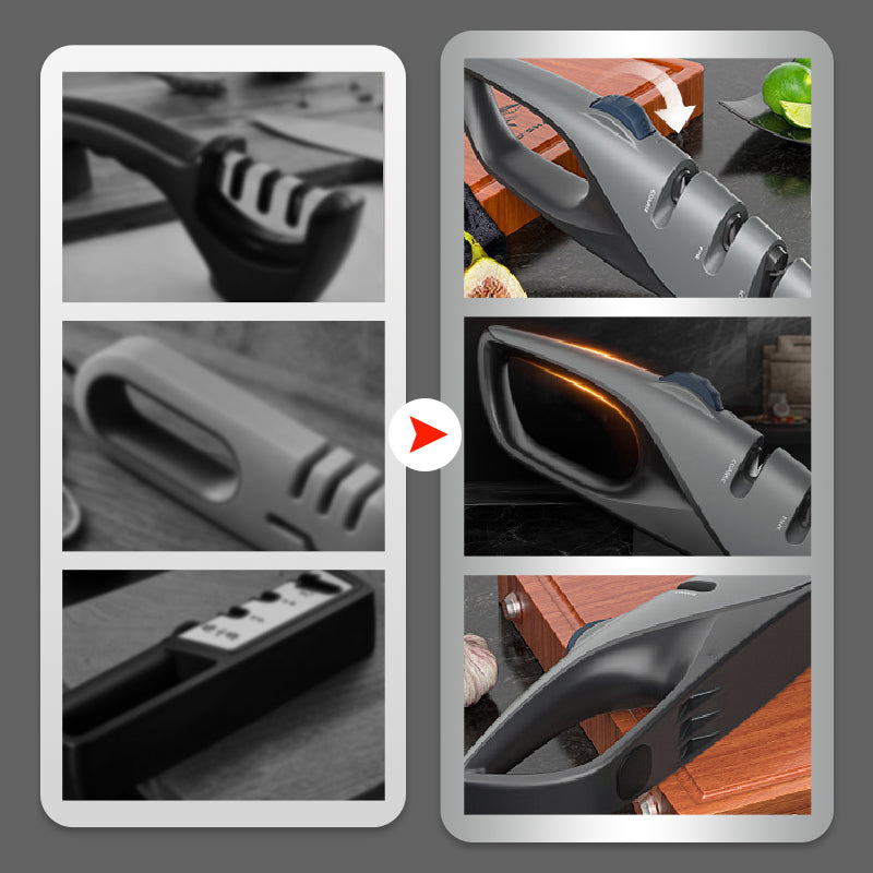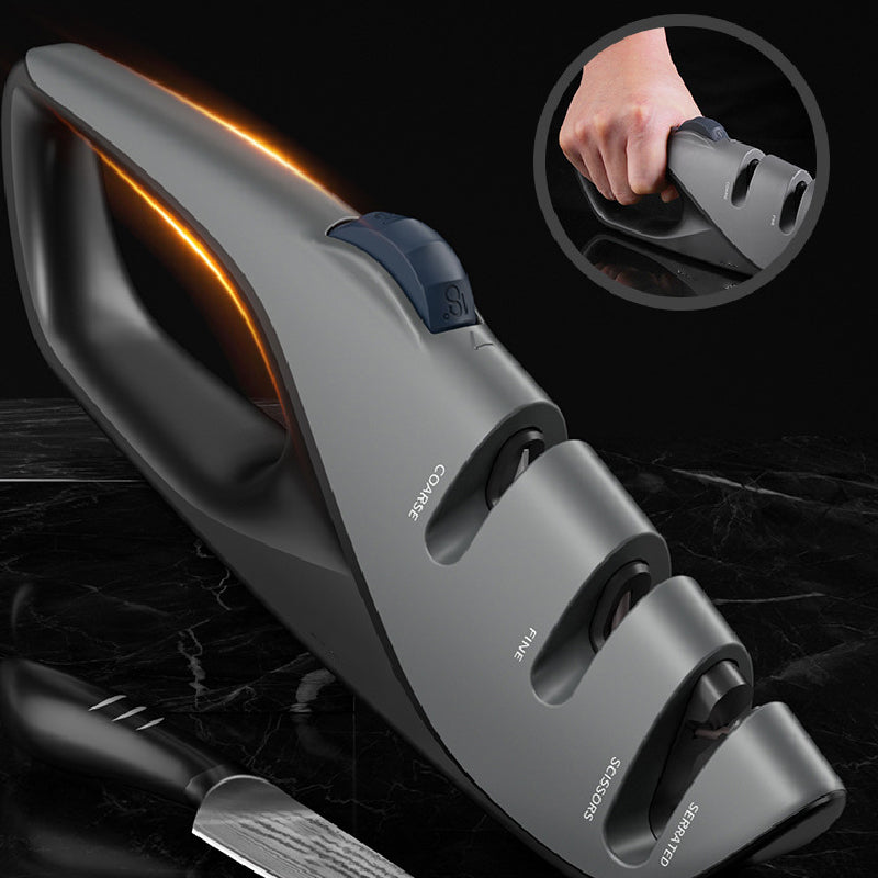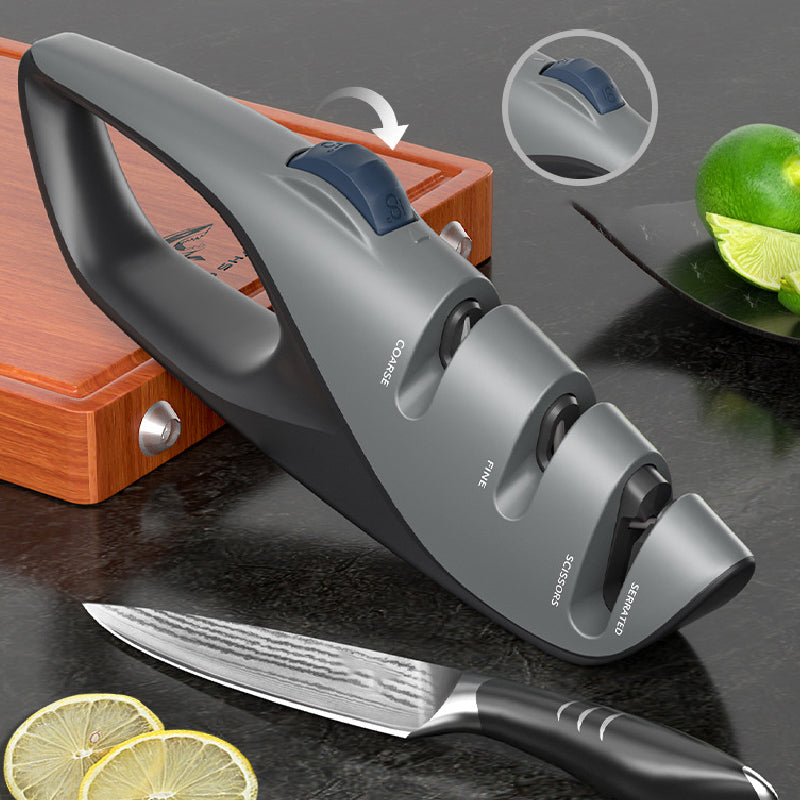 VERSATILE 3-IN-1 DESIGN – Equipped with three sharpening slots—coarse, fine, and scissors—this sharpener meets a wide range of household sharpening needs, from knives to scissors.