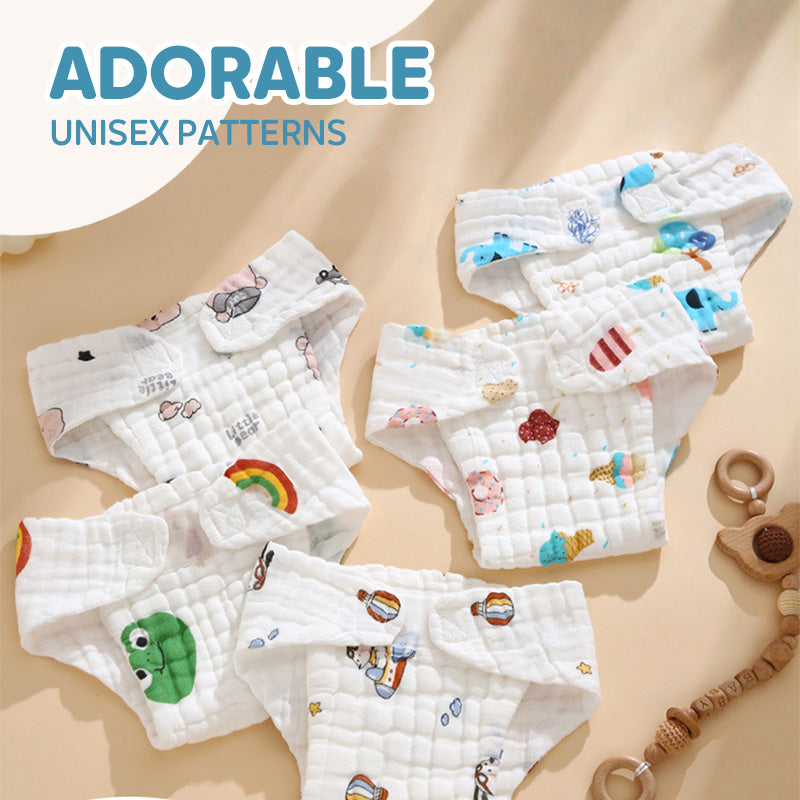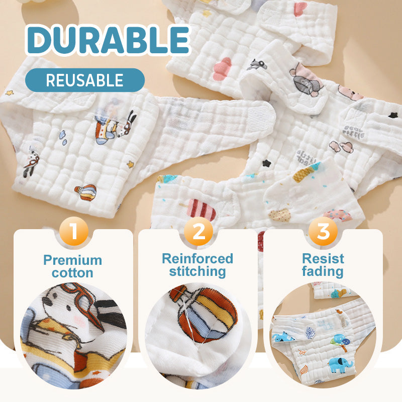 PREMIUM COTTON COMFORT – Made with 12 layers of soft, breathable cotton gauze, these diapers are gentle on baby’s delicate skin. The Class A safety-rated fabric ensures hypoallergenic comfort while preventing irritation and rashes.