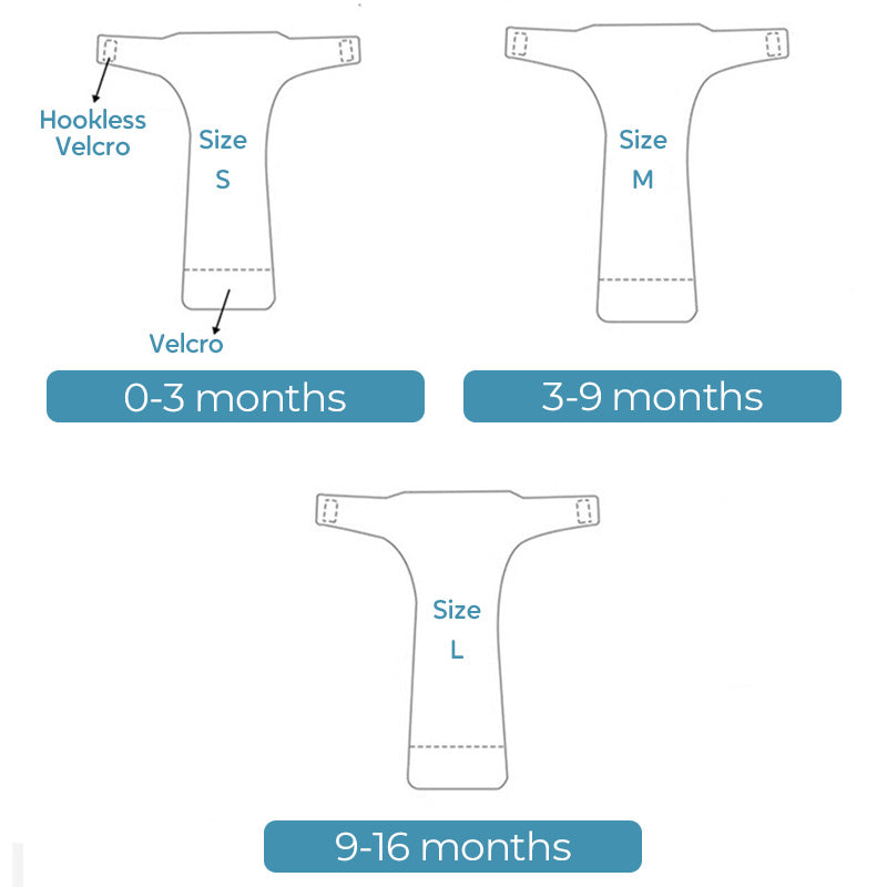 Size: S (0-3 months/5kg), M (3-9 months/5-10kg), L (9-16 months/10-15kg)