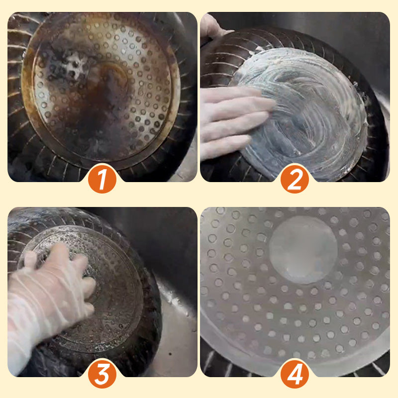 EASY TO USE: Simply wet the greasy cookware, apply the paste evenly, scrub with a steel wool ball, and rinse clean with water—no residue left behind.