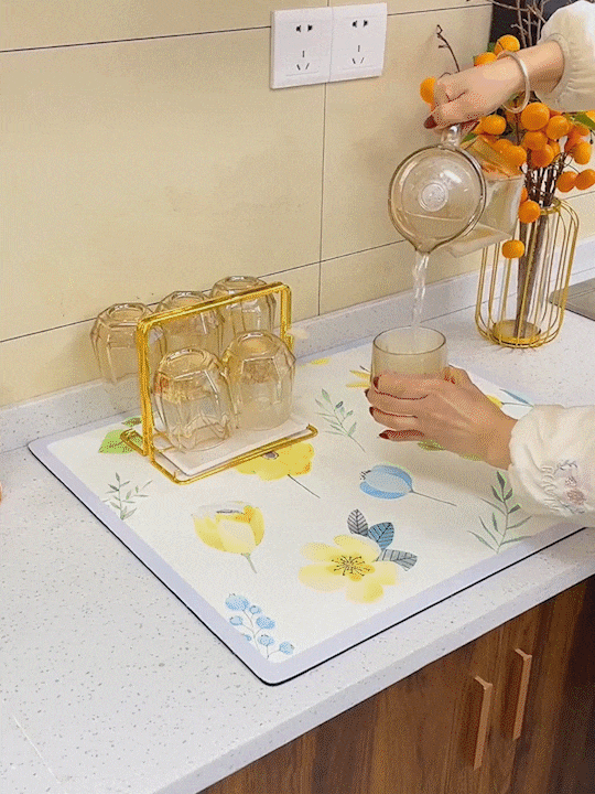 Quickly absorb water in 3 seconds, with no water seepage. Put the wet tableware on the mat, the water will be absorbed instantly at a visible speed, saving the time of cleaning the kitchen.