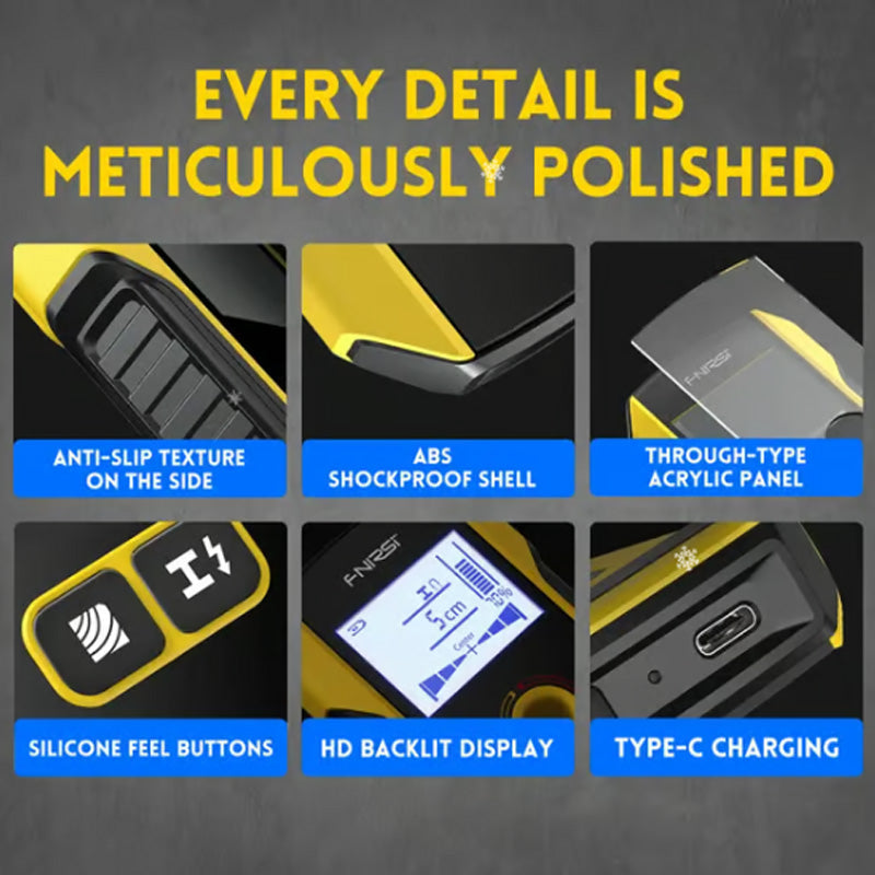 USER-FRIENDLY LCD & AUDIO ALERTS: Features a clear digital LCD display and an audio alarm that instantly notifies you when an object is detected, helping you stay aware and accurate during scans.