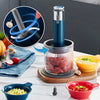 Electric mini garlic chopper is equipped with a 70-watt powerful motor and 2 hard and sharp blades, which can easily chop garlic, onion, chili, parsley, shallot, ginger, peanut, pepper, minced meat and so on. The capacity of the electric food bowl is 500ml x 1 bowl,100 ml x 3 bowl, just right to meet the demand of a small amount, without food waste. Mini chopper saves time and energy, making your cooking experience more enjoyable.
