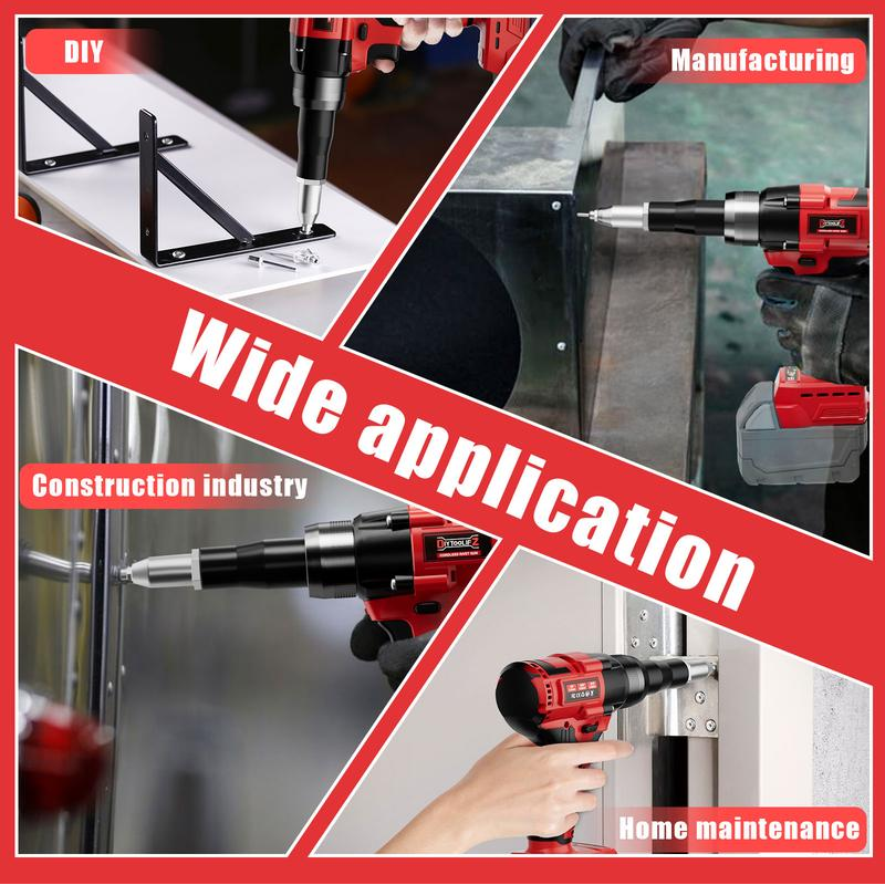HIGH-TORQUE MOTOR: Experience the force with a brushless motor, capable of high pulling force. This rivet gun is the powerhouse you need for those stubborn rivets, ensuring a secure and precise fit every time. Whether you're a seasoned pro or just starting out, it's the perfect addition to your tool arsenal.
