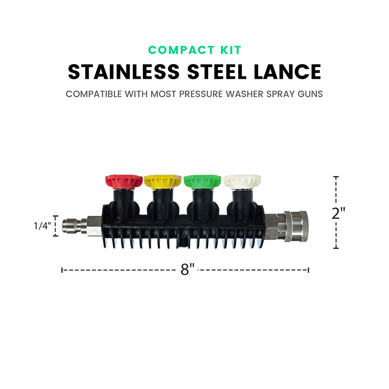 ADJUSTABLE NOZZLE HEAD: Includes multiple quick-connect nozzles (0°, 15°, 25°, 40°) for flexible control of the cleaning effect - switch between precise and wide spraying in seconds.