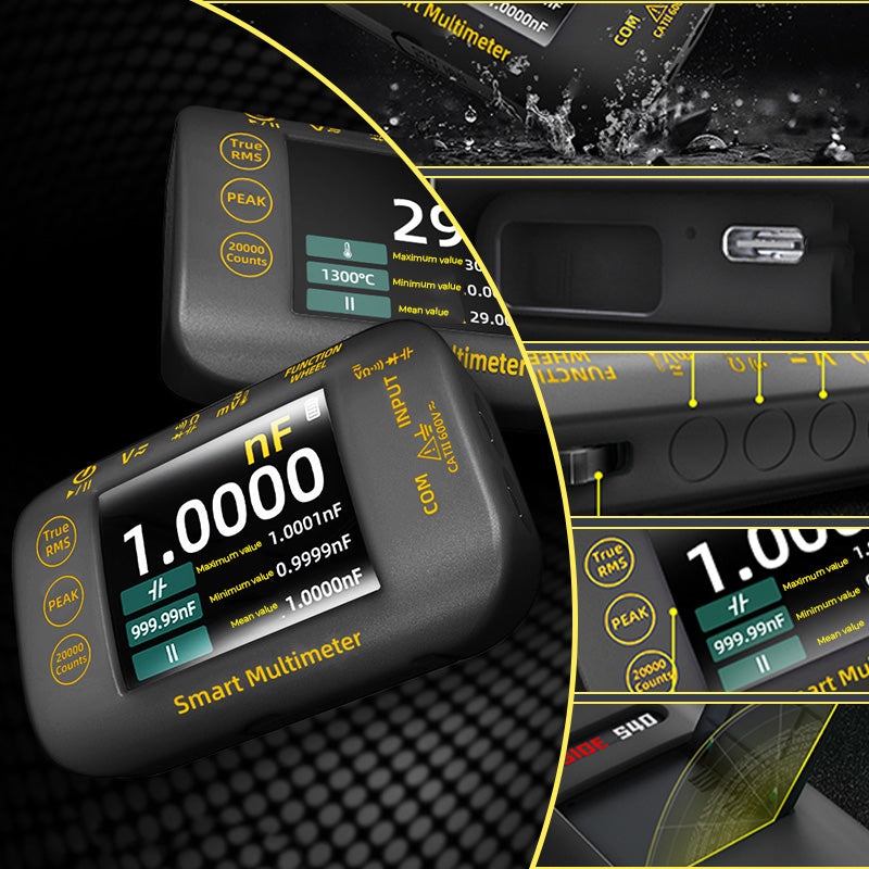 USER-FRIENDLY DESIGN - Featuring a full silicone case for enhanced durability, an adjustable desktop stand for convenience, and intuitive function buttons, this multimeter ensures a smooth and efficient user experience. The universal Type-C charging interface makes it easy to power up without hassle.