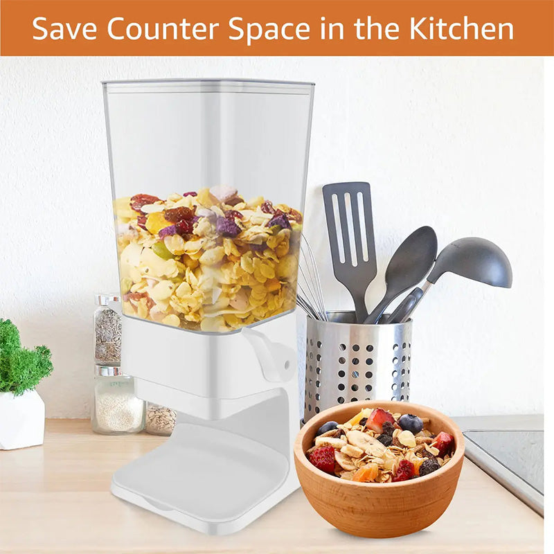 HANDY KITCHEN GADGETS - The cereal dispensers for home is friendly, because oatmeals can be released easily by pressing the handles on both sides of the container. It keeps you away from unnecessary packaging mess and spillages.