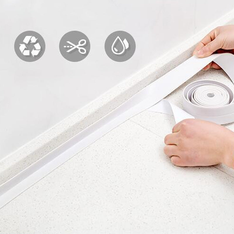 MATERIAL - Crafted from high-quality PVC, our caulk tape ensures superior waterproofing and adhesion. Designed to withstand moisture, it’s perfect for long-lasting applications in your kitchen and bathroom.