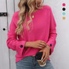 Women's Round Neck Long-Sleeve Sweater with Button Detail