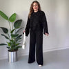 COMFORTABLE LOOSE-FIT PANTS - The matching pants are designed with a relaxed, loose fit, providing maximum comfort for lounging or casual wear. The wide-leg design enhances freedom of movement while offering a flattering look.