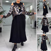UNIQUE LAYERED OVERLAY: A lightweight print chiffon layer drapes gracefully over the solid black midi dress, adding depth and contrast.