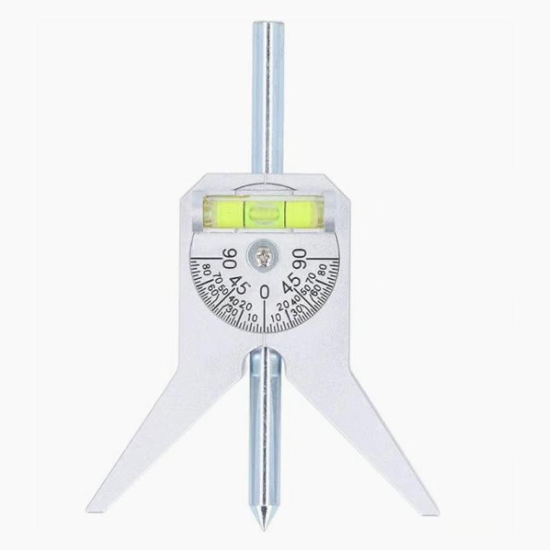 Y-TYPE BASE WITH BUBBLE PROTRACTOR – Features a stable four-leg Y design and an integrated bubble level dial for easy, accurate angle and level measurements on round surfaces.