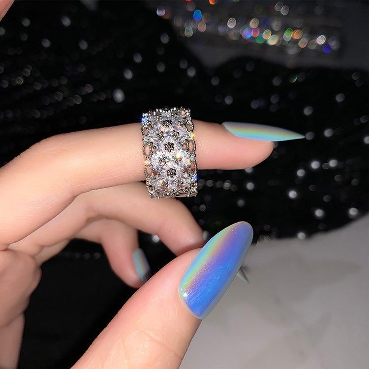 GIFT IDEA - It is the perfect gift for any special occasion. Featuring brilliant zirconia set in a wide band, this beautiful ring is sure to make a lasting impression. With its timeless design and unparalleled quality, the Women's Zirconia Band Ring is a luxurious and luxurious gift that will be treasured for years to come.